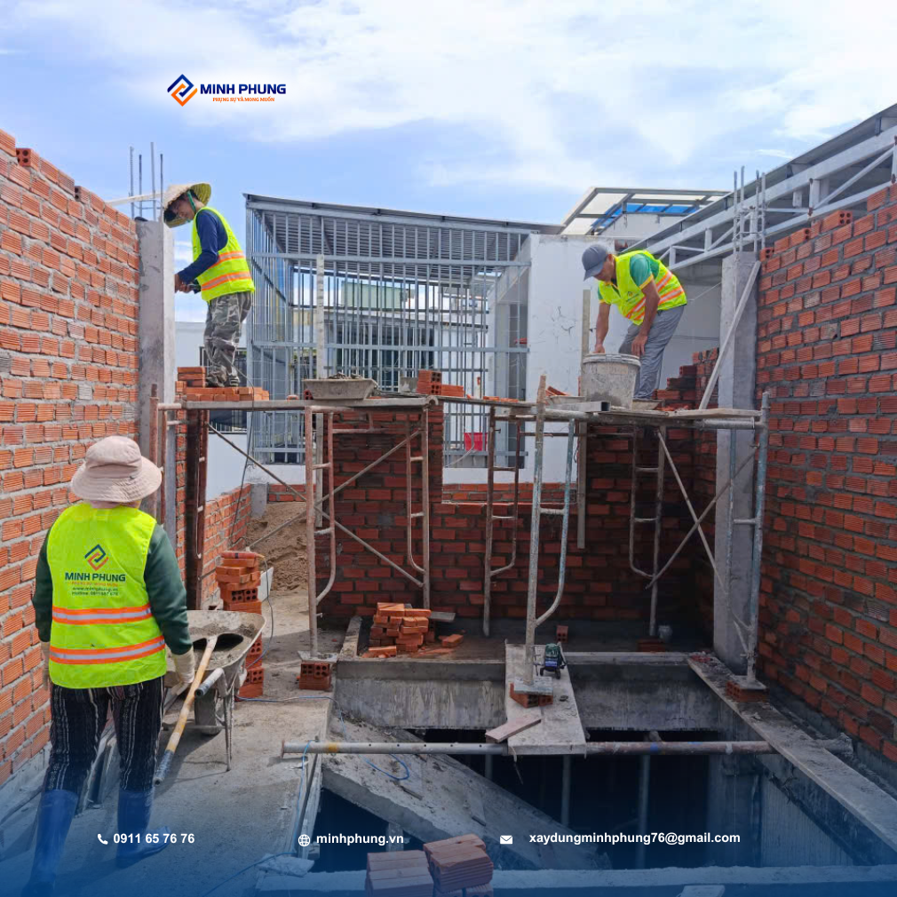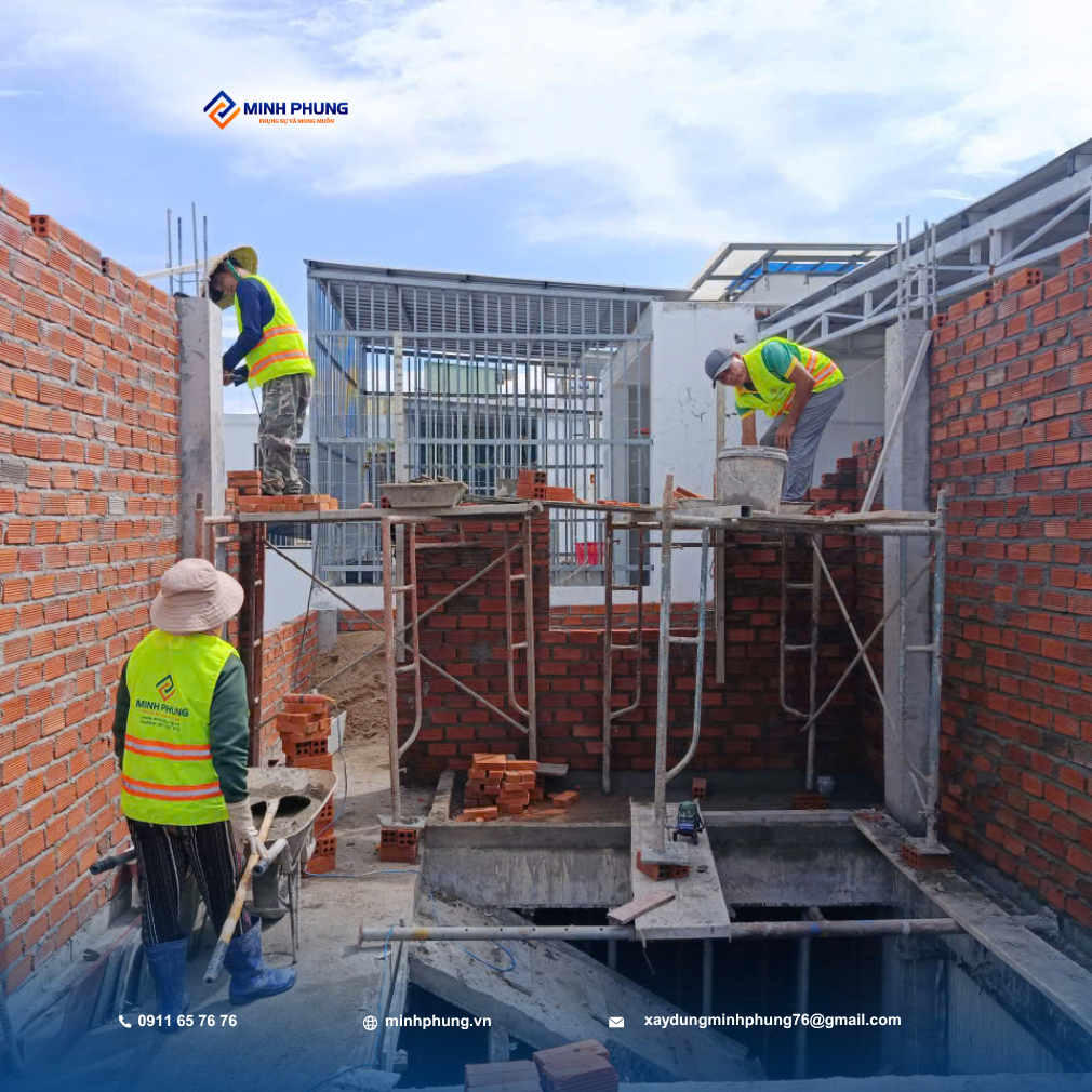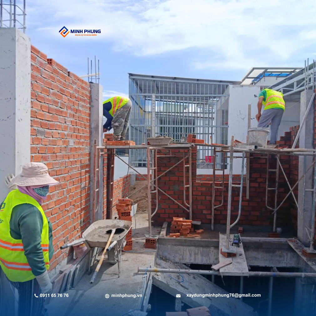 Minh Phụng luôn đảm bảo vật tư đầu vào được kiểm tra nghiêm ngặt, từ gạch xây, xi măng đến các vật liệu hoàn thiện, thể hiện cam kết trong dịch vụ xây nhà chất lượng cao.