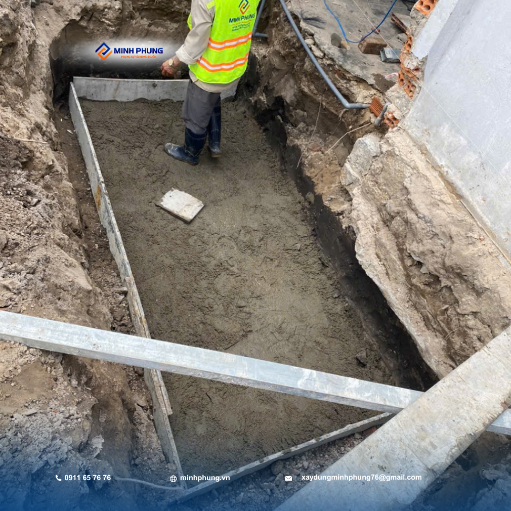 - Lắp đặt cốt pha: Cốt pha được lắp đặt kiên cố, thẳng tắp để làm khuôn đổ bê tông. Đội ngũ thợ lành nghề của Minh Phụng đã đảm bảo rằng cốt pha không chỉ chắc chắn mà còn tạo ra bề mặt phẳng mịn, sẵn sàng cho công đoạn đổ bê tông.