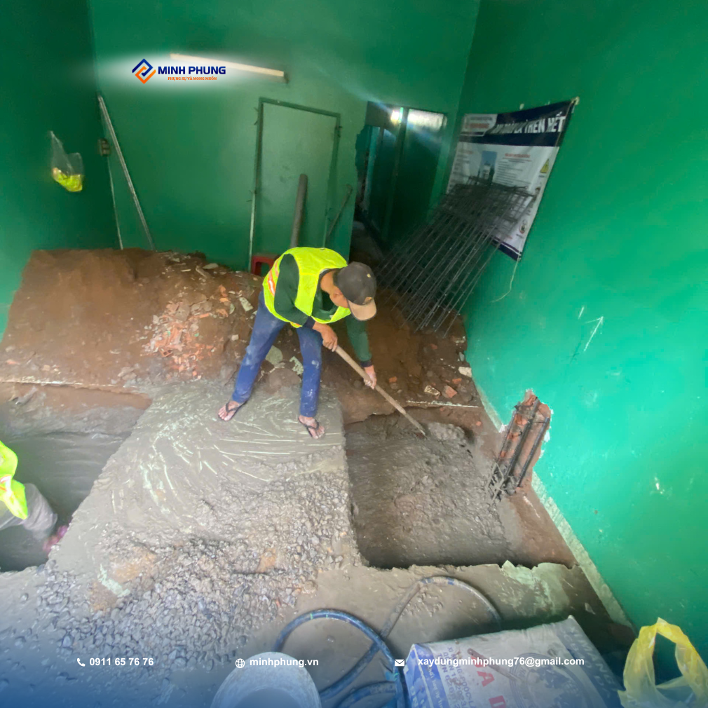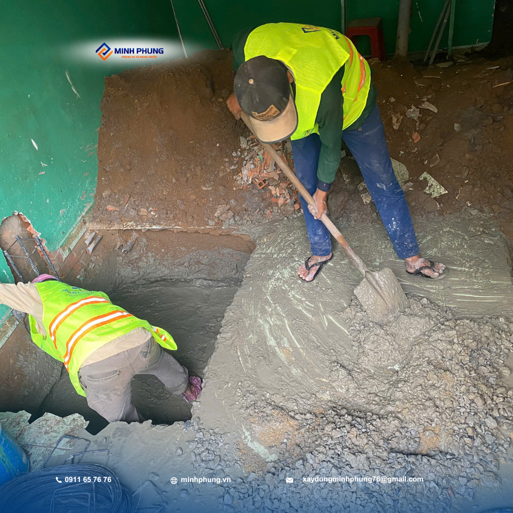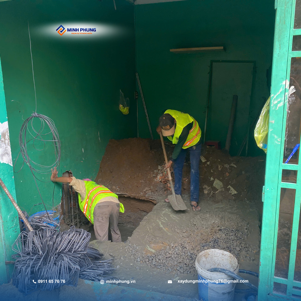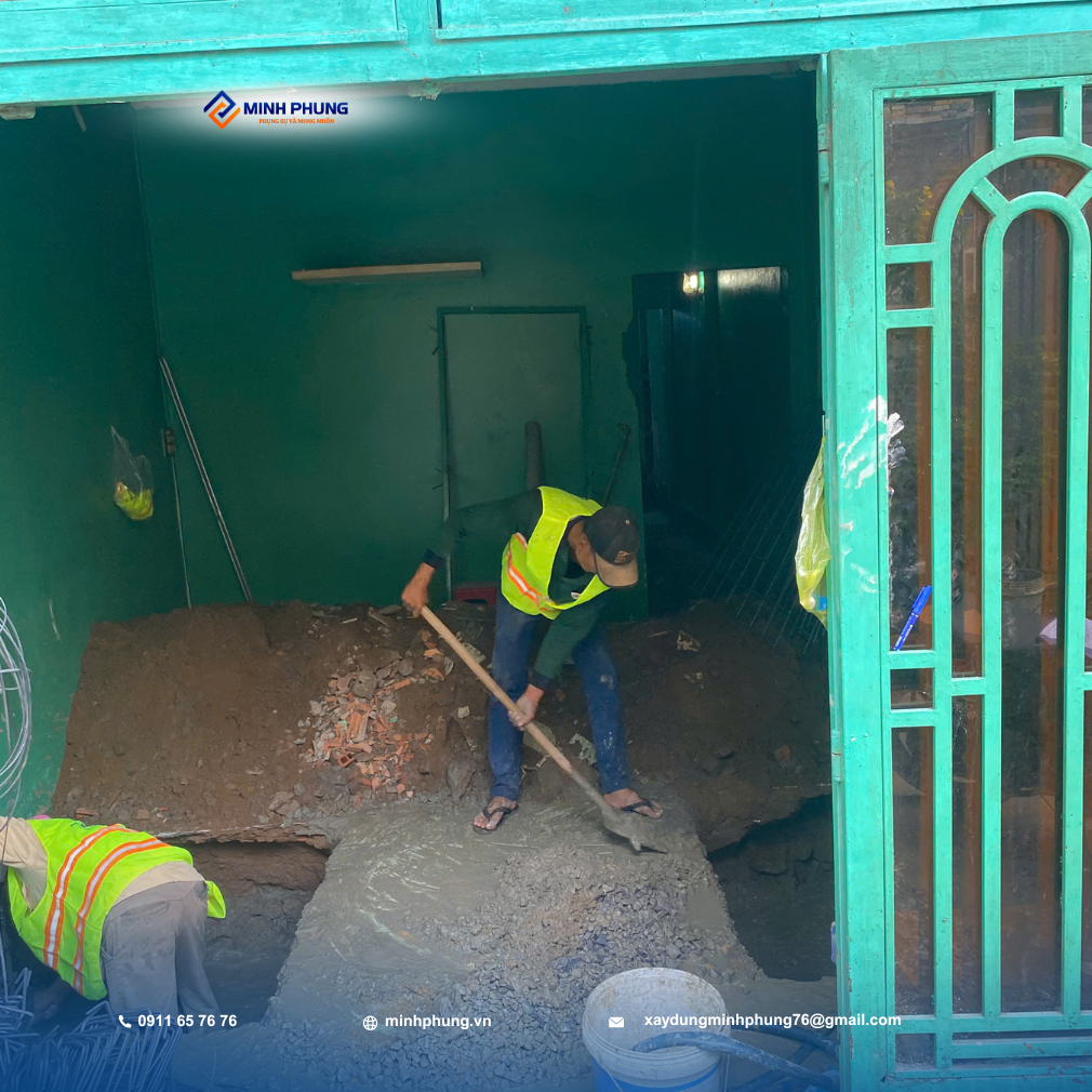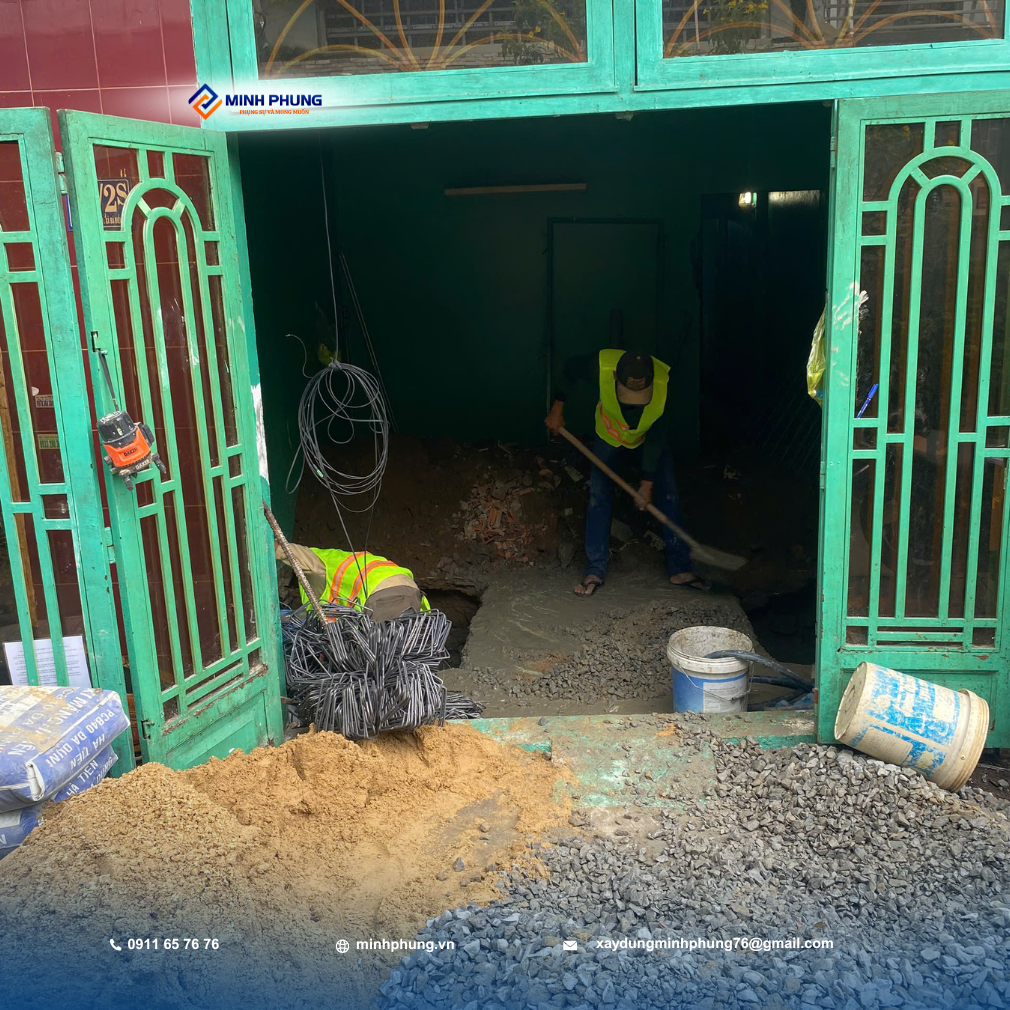 Hiện tại, đội ngũ kỹ sư và thợ lành nghề của Minh Phụng đang tập trung cao độ vào giai đoạn nền móng và kết cấu chịu lực – phần quan trọng nhất đối với nhà nâng tầng. Giai đoạn này quyết định sự an toàn và tuổi thọ của công trình: