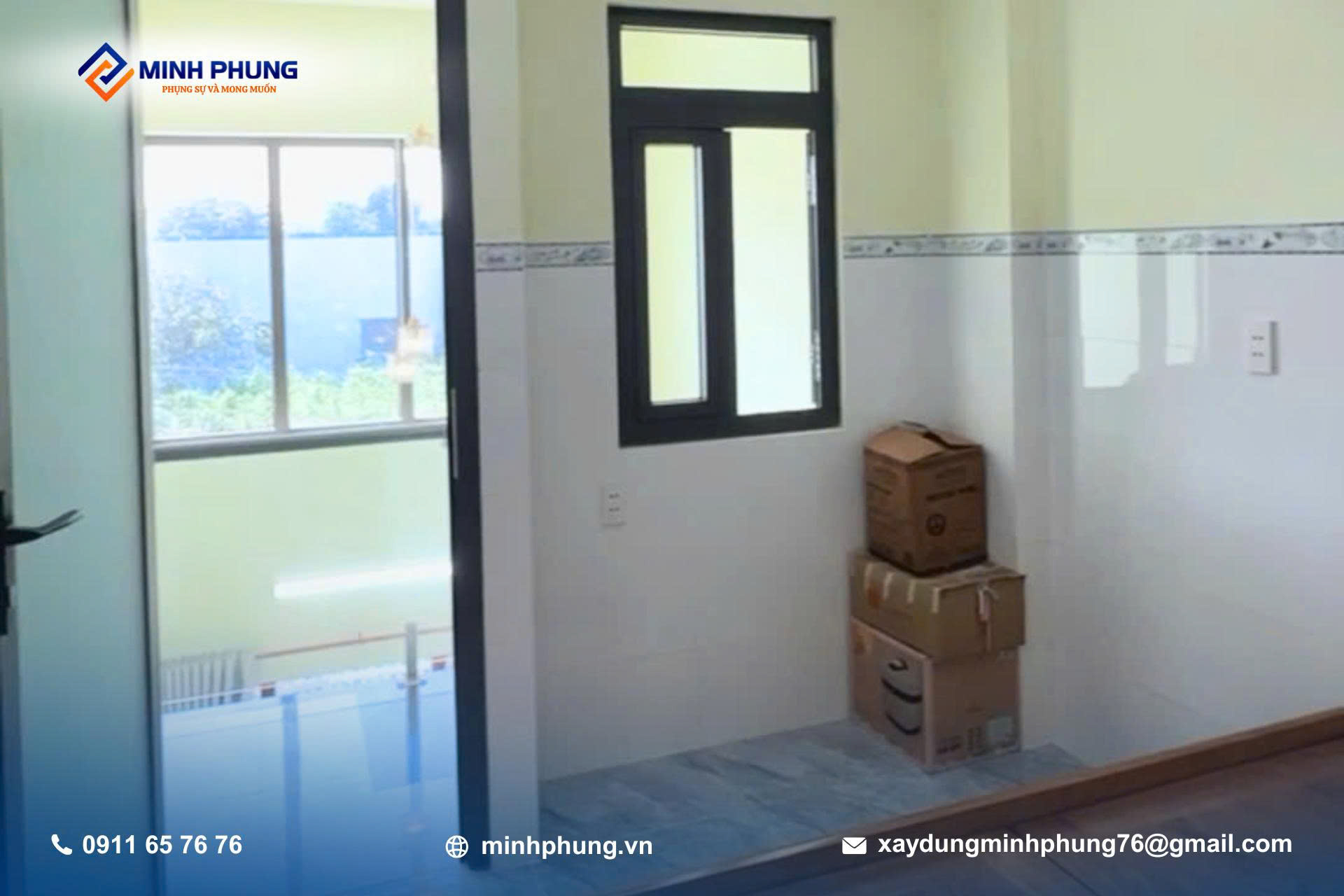 Kết cấu nhà được thi công đúng tiêu chuẩn, đảm bảo an toàn khi sử dụng lâu dài. Các hạng mục quan trọng như móng, sàn gác lửng, hệ thống điện nước đều được kiểm tra và nghiệm thu kỹ lưỡng. Điều này giúp công trình tuy chi phí thấp nhưng vẫn đạt yêu cầu kỹ thuật, đúng tinh thần của một đơn vị xây nhà uy tín.