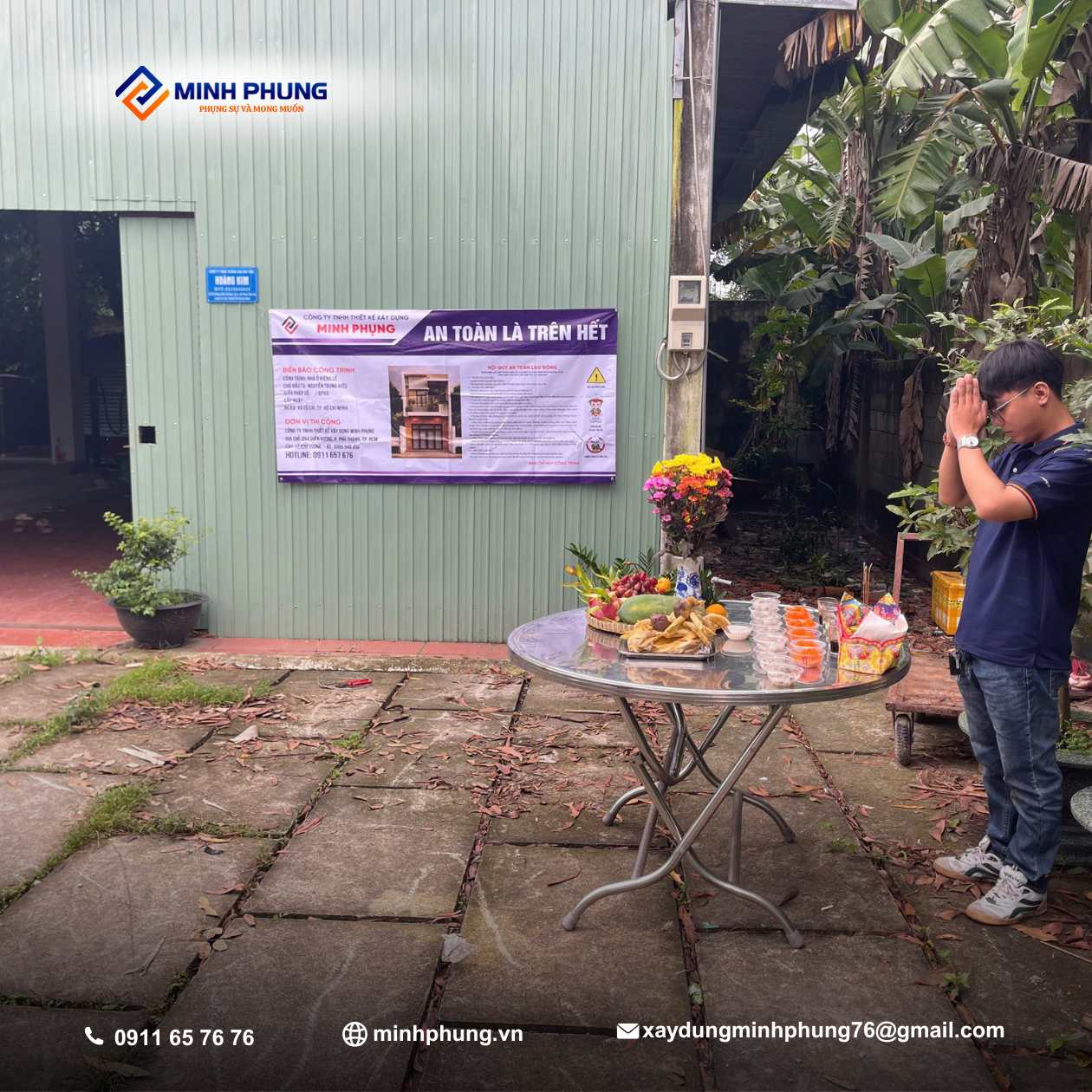 Khoảnh khắc Trang trọng: Gia đình Anh Hiếu đã tự tay chuẩn bị lễ vật chu đáo, thực hiện nghi thức cúng khởi công nhà với niềm tin sâu sắc. Sự hiện diện đầy đủ của các thành viên gia đình và đại diện Minh Phụng đã mang lại sinh khí tốt lành cho khu đất.