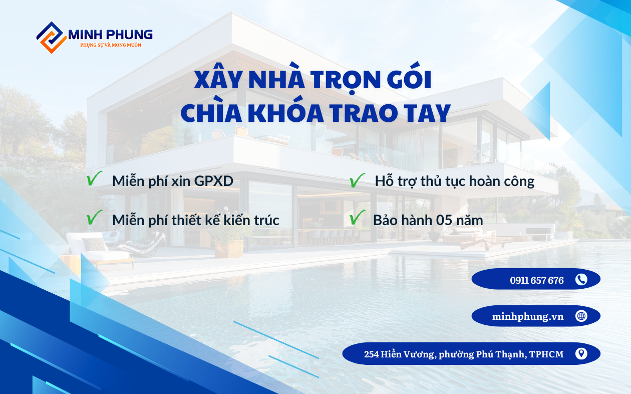 Lưu ý: Đây là mức giá tham khảo và có thể thay đổi tùy thuộc vào vị trí địa lý, điều kiện thi công, yêu cầu đặc biệt của chủ đầu tư và thời điểm cụ thể. Để nhận báo giá xây nhà trọn gói chi tiết và chính xác nhất, vui lòng liên hệ trực tiếp với Minh Phụng qua Hotline: 0911 657 676 ngay hôm nay!