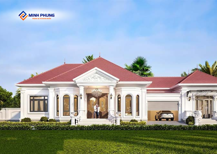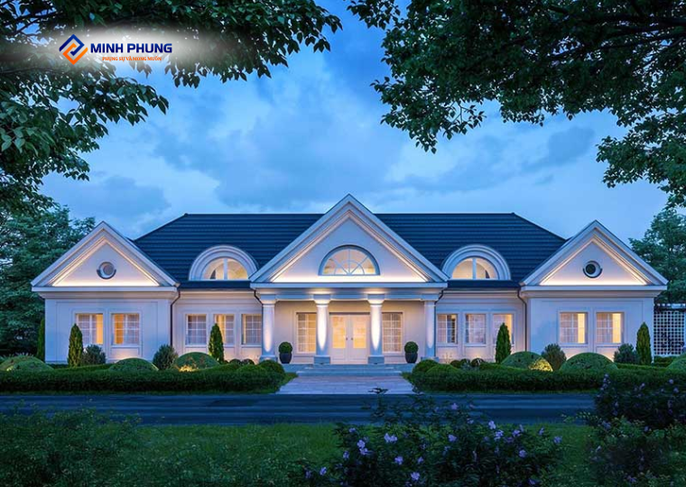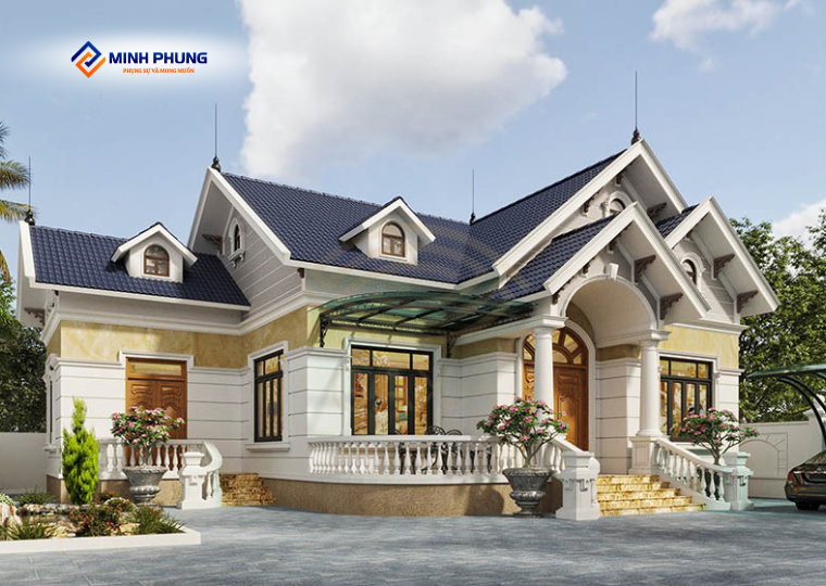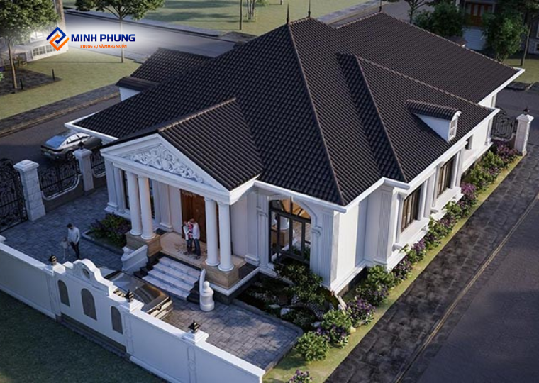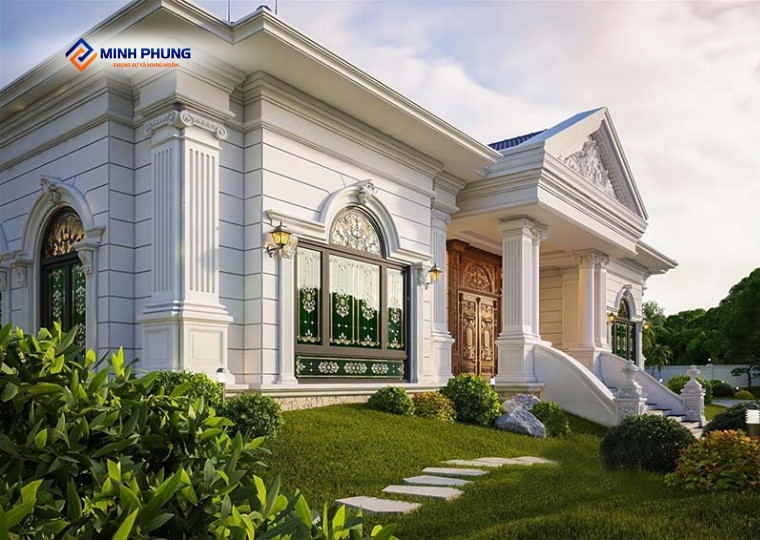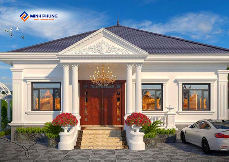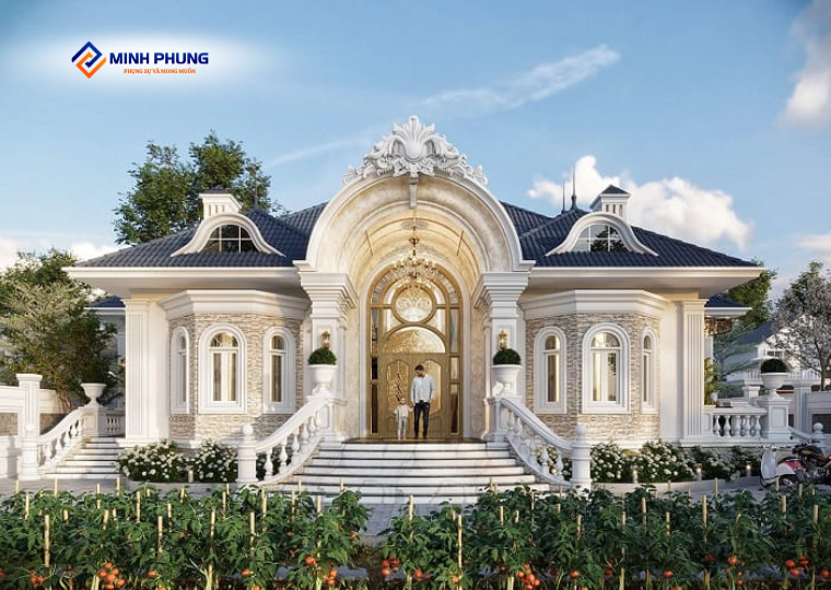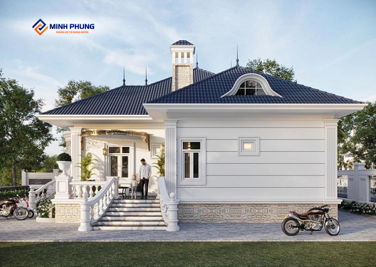 Biệt thự một tầng theo phong cách cổ điển hiện đại là gợi ý hoàn hảo dành cho bạn. Sự hòa quyện giữa cổ kính và kiến trúc hiện đại mang đến không gian sống độc đáo cho gia chủ. Bạn có thể thiết kế biệt thự xinh đẹp với sân trước và những chậu cây xanh tạo nên môi trường sống trong lành và mát mẻ.