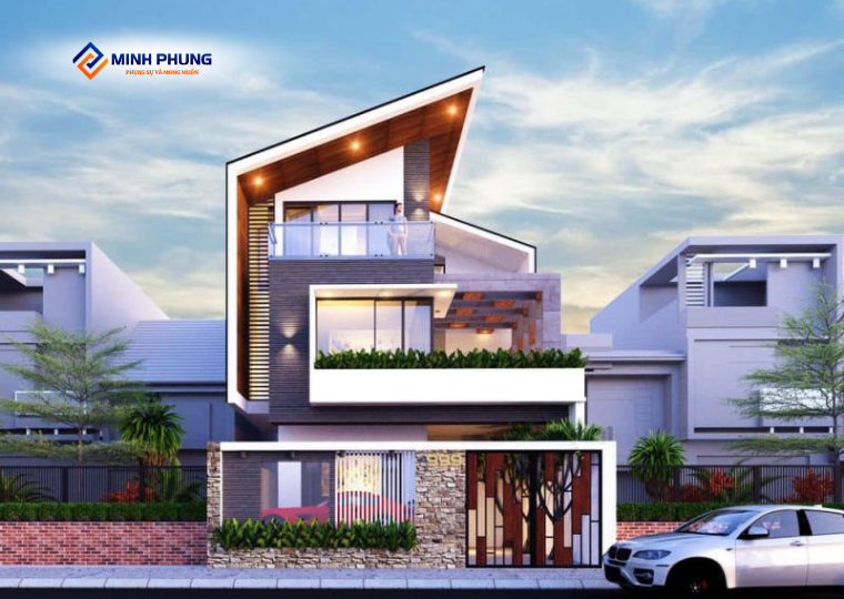 - Sử Dụng Mái Nhà Phá Cách: Các giải pháp mái nhà không chỉ để che chắn mà còn là điểm nhấn thẩm mỹ, từ Mái Bằng Hiện Đại (tận dụng làm sân thượng/vườn Zen), Mái Lệch Cá Tính (tạo hình khối bất đối xứng) đến mái Thái, giúp tối ưu thoát nước và tăng chiều cao cho mặt tiền.