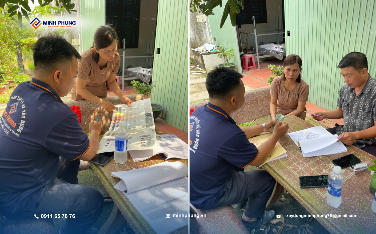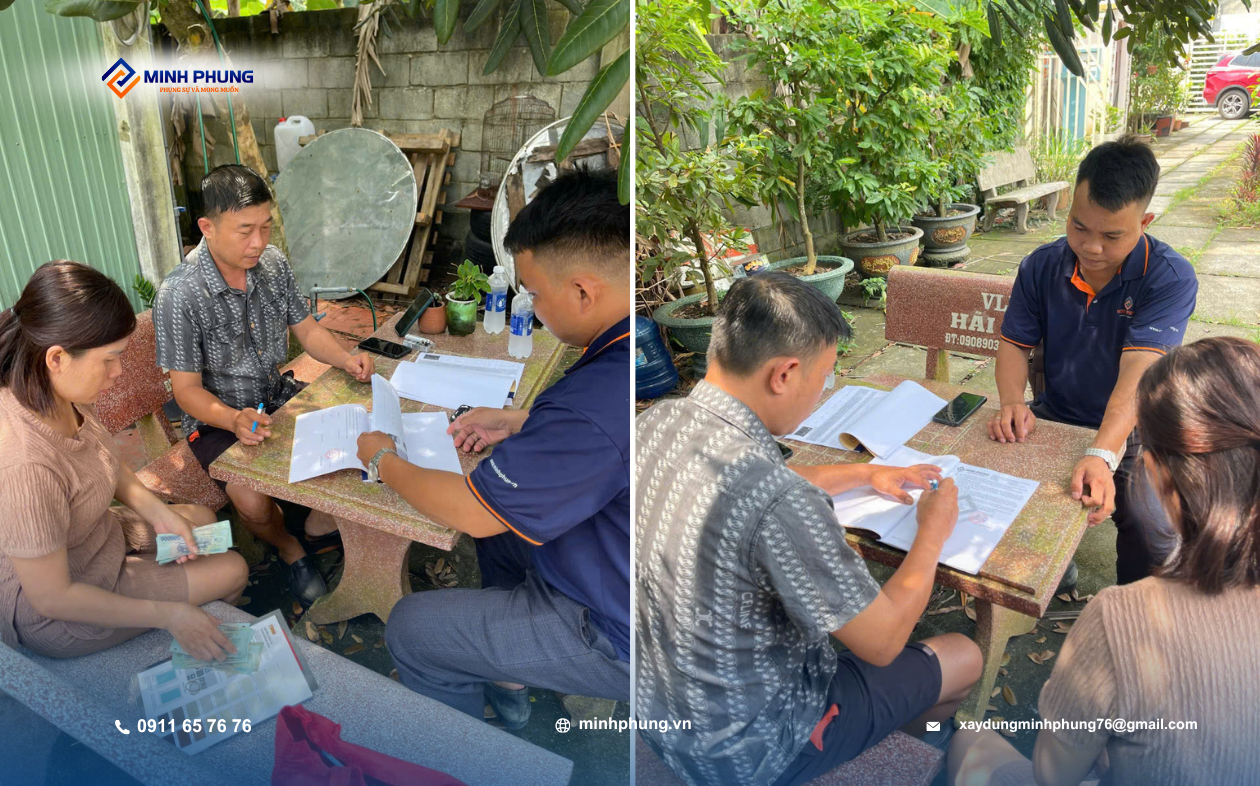 Buổi lễ ký hợp đồng diễn ra ấm cúng, nhanh chóng, thể hiện sự tin tưởng tuyệt đối của gia đình anh Hiếu dành cho uy tín và sự chuyên nghiệp của công ty xây nhà Minh Phụng.