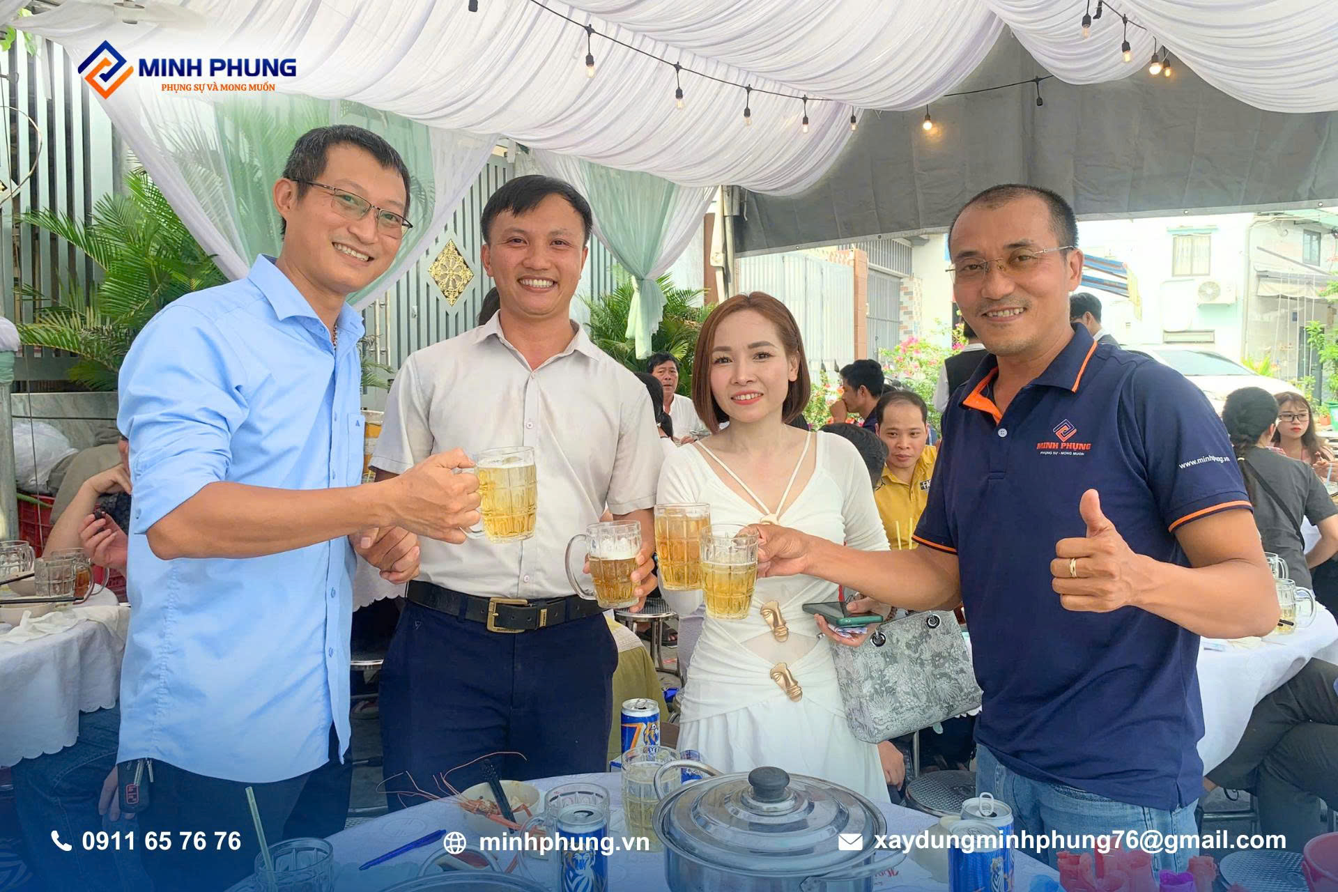 Điều đặc biệt là Minh Phụng không chỉ bàn giao công trình rồi kết thúc trách nhiệm, mà còn cùng gia đình nâng ly chúc mừng, chia sẻ niềm vui trong ngày trọng đại. Khoảnh khắc đó đã xóa nhòa ranh giới giữa khách hàng và công ty, thay vào đó là sự gắn kết, tin tưởng và đồng hành.