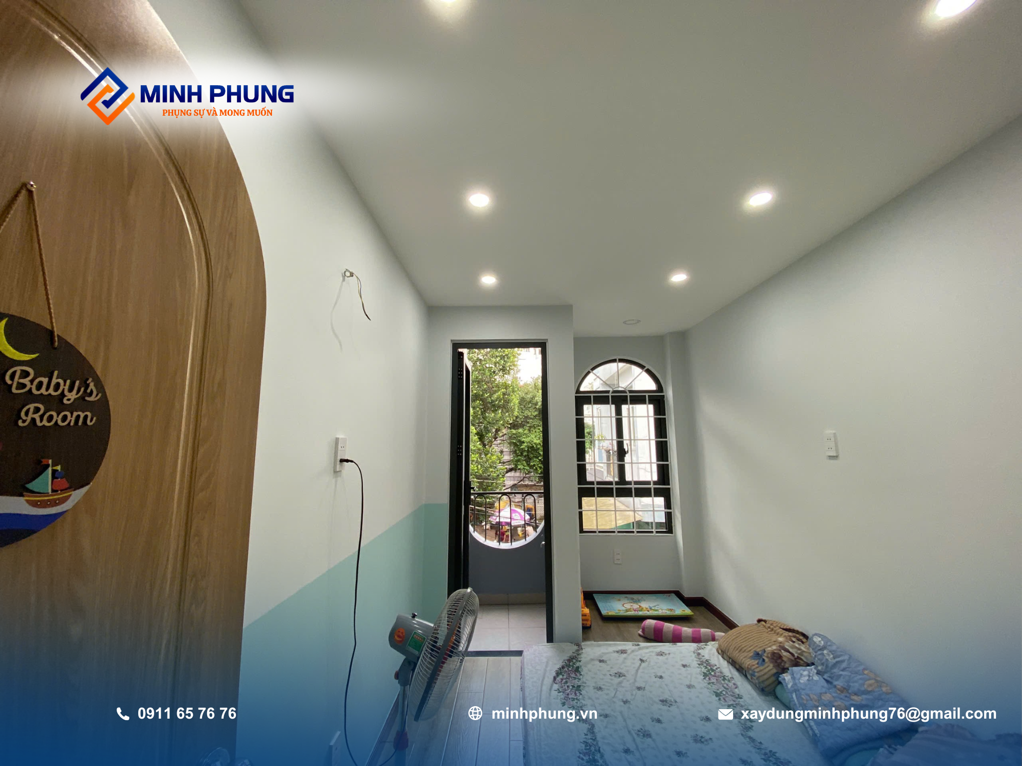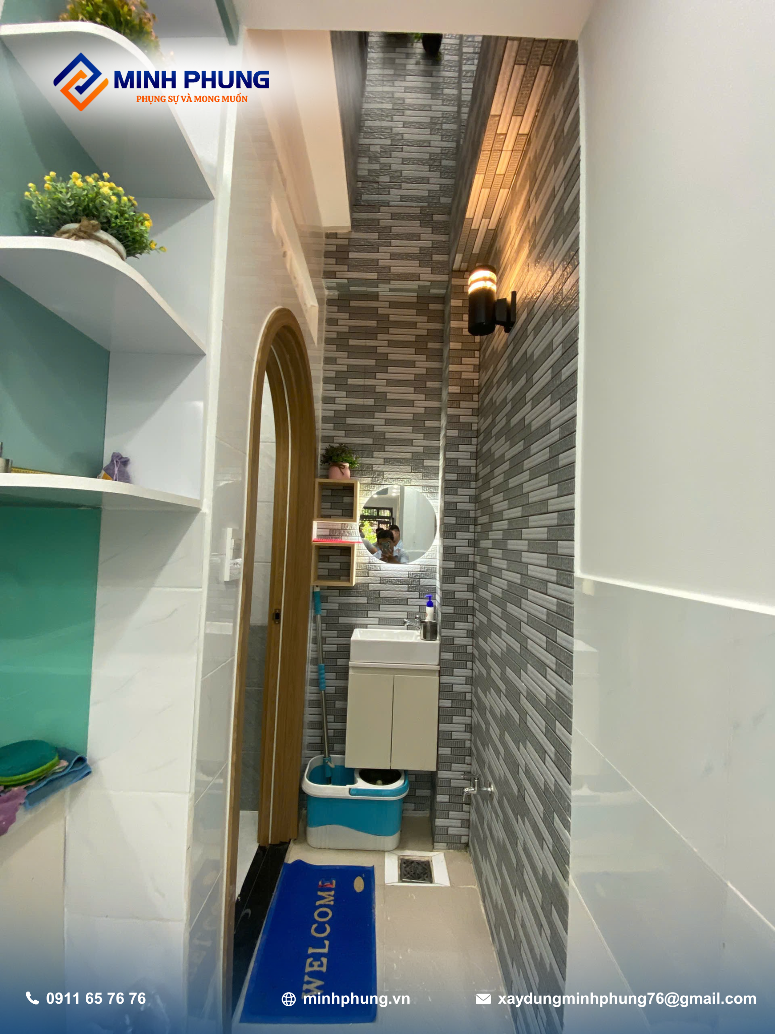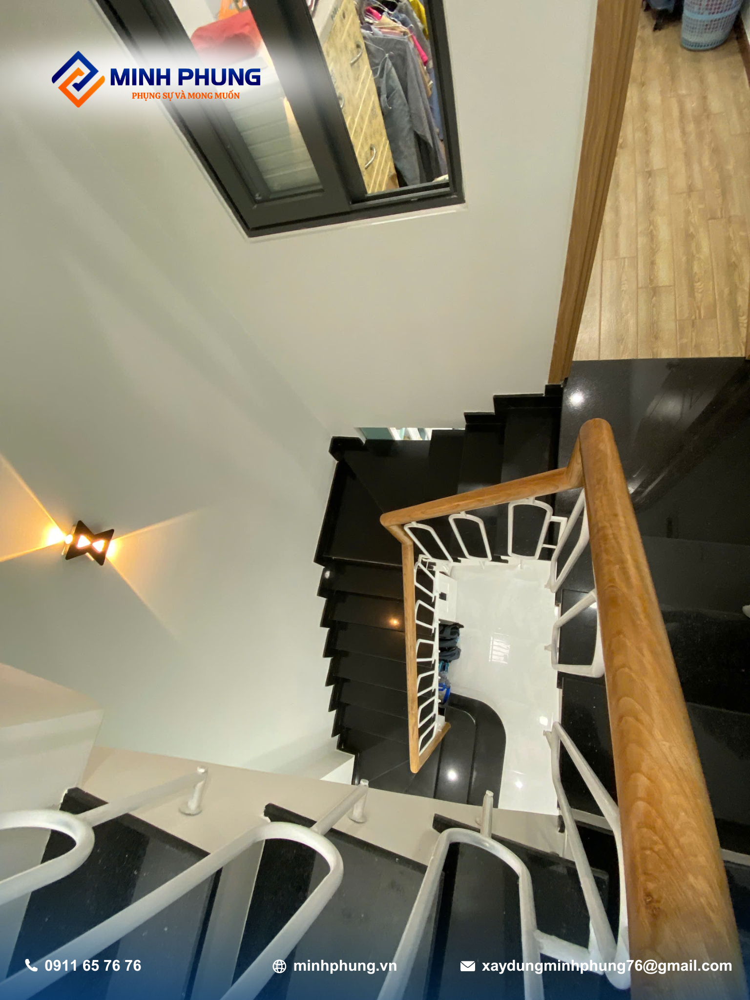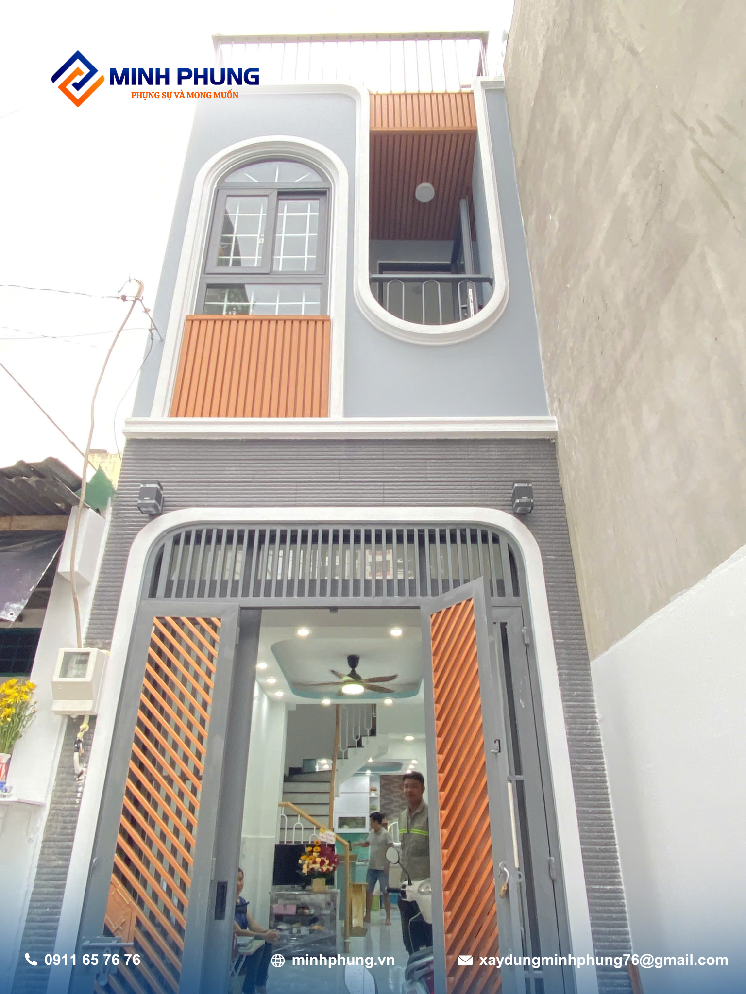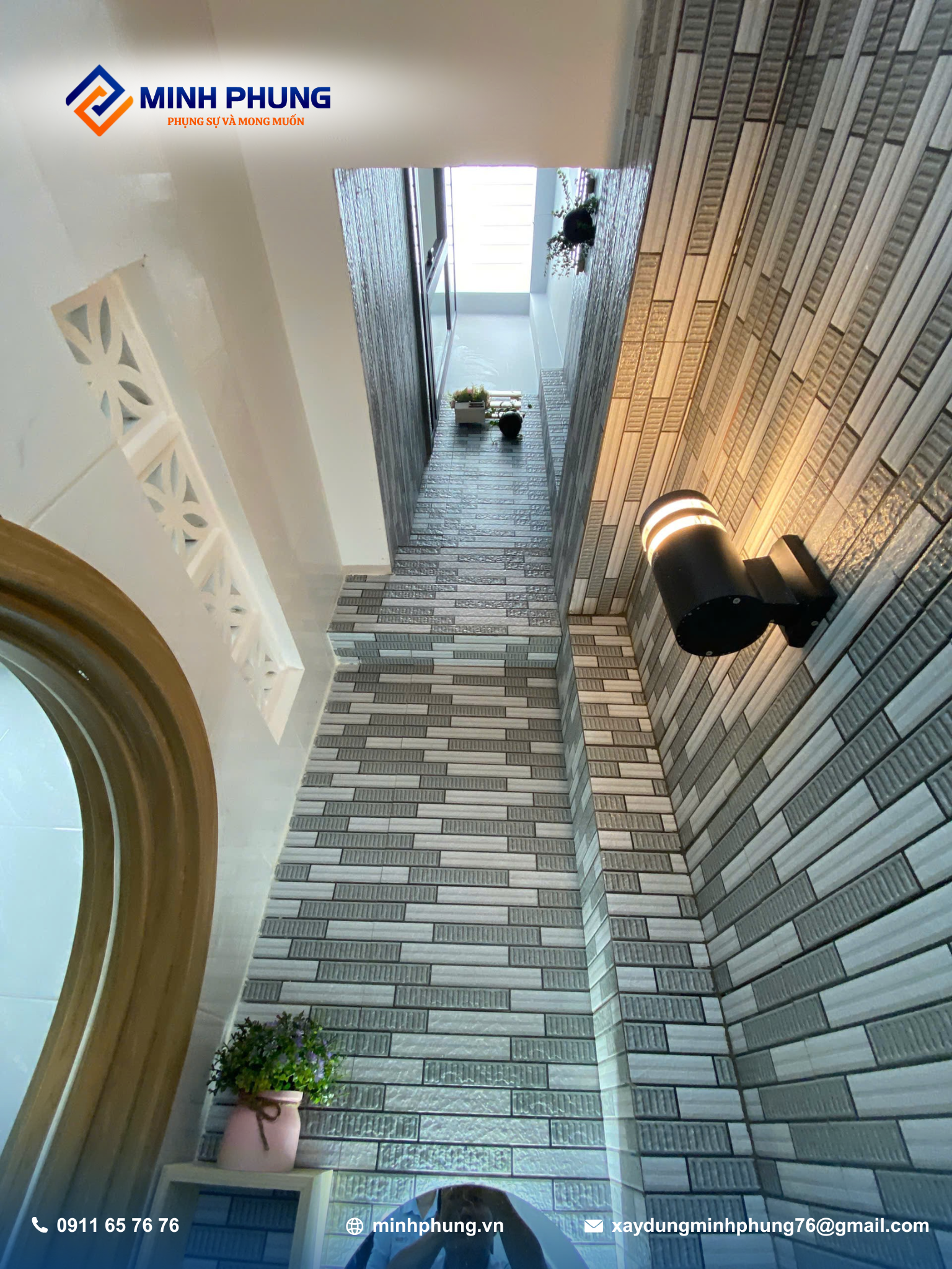 Về mặt kỹ thuật, công trình được Minh Phụng khảo sát hiện trạng kỹ lưỡng trước khi thi công. Hệ móng, cột, dầm, sàn được tính toán phù hợp với nhà phố xây cao tầng trên diện tích hẹp. Vật tư sử dụng đúng chủng loại đã cam kết trong hợp đồng báo giá xây nhà trọn gói 2026, không thay đổi trong quá trình thi công.