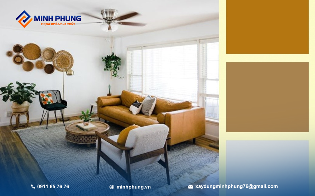 Theo phong thủy, màu sắc có mối liên hệ mật thiết với vận mệnh của gia chủ. Lựa chọn màu sơn ngoại thất và nội thất phù hợp với ngũ hành sẽ giúp tăng cường năng lượng tích cực, mang lại may mắn. Chẳng hạn, người mệnh Kim nên ưu tiên màu trắng, xám, vàng, trong khi người mệnh Mộc nên chọn màu xanh lá cây, nâu gỗ. Lựa chọn màu sắc trong gói xây dựng nhà trọn gói của Minh Phụng luôn được đội ngũ chuyên gia tư vấn kỹ lưỡng.