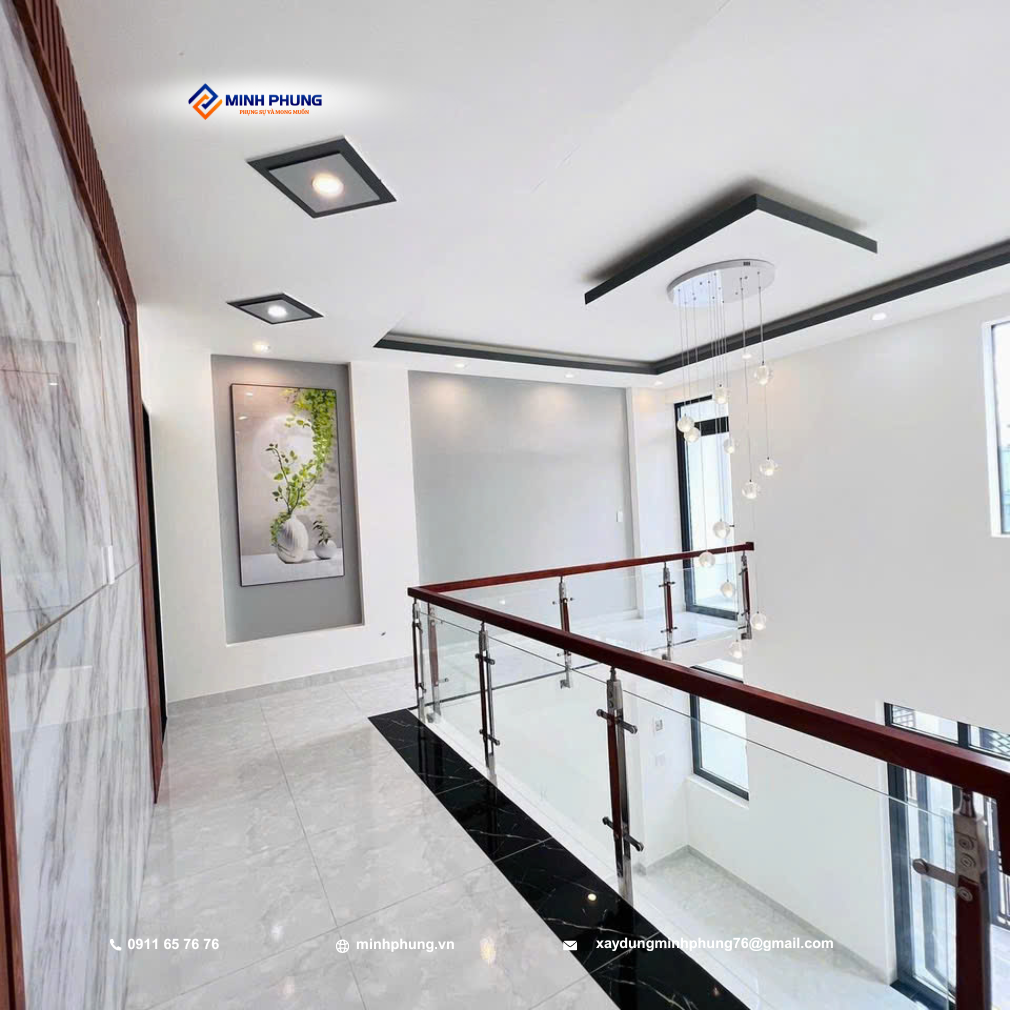 Tại Minh Phụng, chúng tôi đã nâng tầm khái niệm về nhà gác lửng, biến ngôi nhà trở thành một tác phẩm kiến trúc tinh tế và đầy cảm hứng. Mẫu thiết kế độc đáo này không chỉ tối ưu hóa công năng mà còn mở ra một không gian sống hoàn toàn khác biệt, với điểm nhấn là lối hành lang dẫn ra ban công sân thượng phía trước.