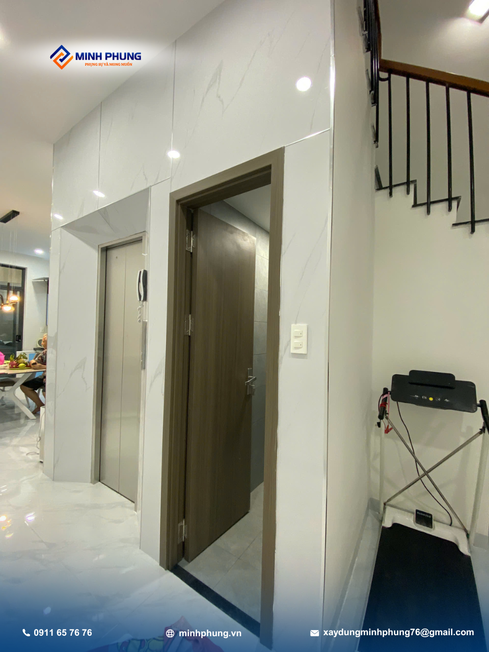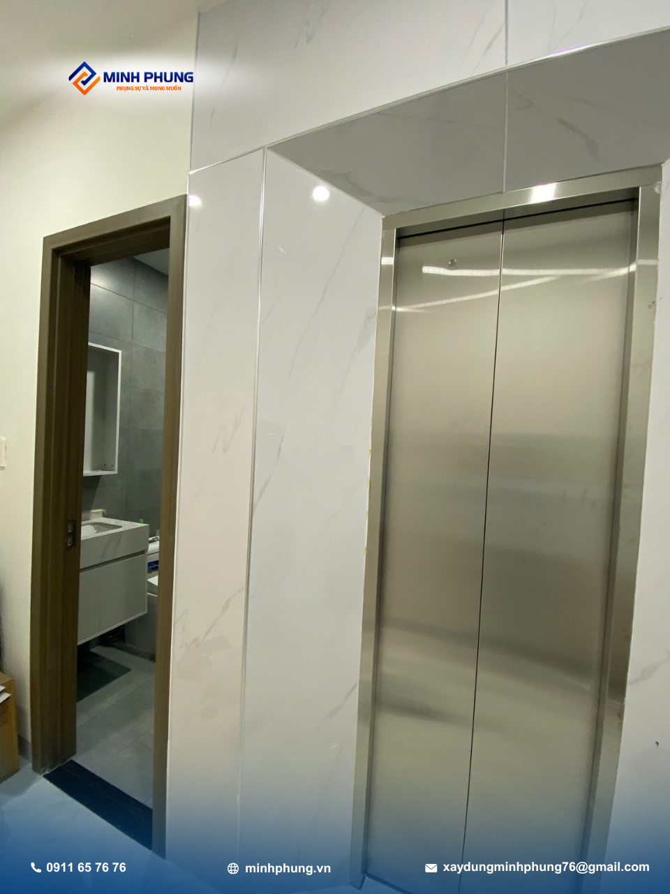 Việc bố trí thang máy trong công trình giúp việc di chuyển giữa các tầng trở nên nhẹ nhàng, đặc biệt phù hợp với người lớn tuổi. Đây là xu hướng ngày càng phổ biến trong các dự án xây nhà trọn gói chìa khóa trao tay hiện đại, giúp nâng cao chất lượng sống và giá trị lâu dài cho ngôi nhà.
