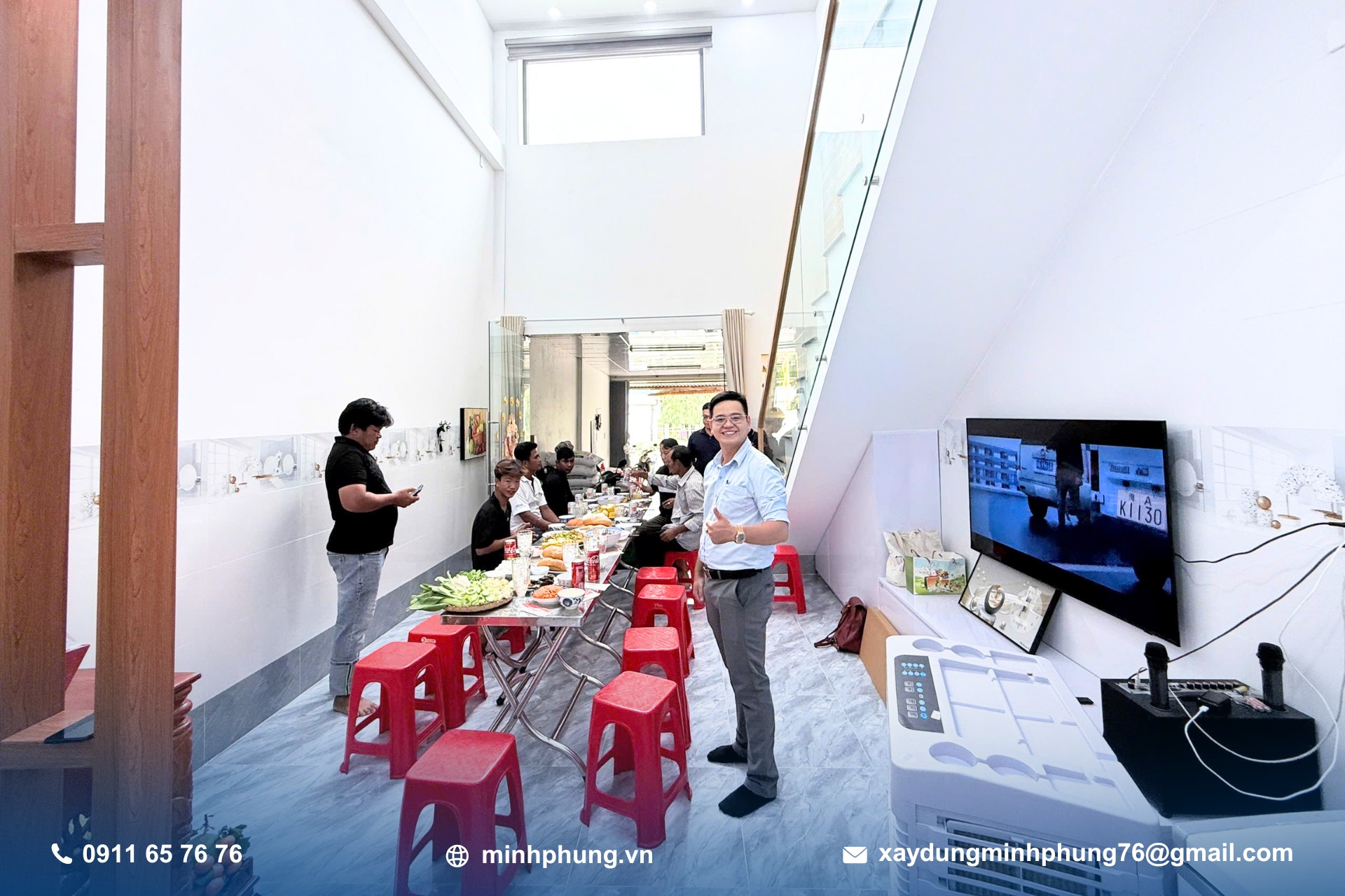 Trong quá trình tìm hiểu báo giá xây nhà Long An 2026, chị Thủy đặc biệt quan tâm đến phương án cải tạo tiết kiệm nhưng vẫn đảm bảo thẩm mỹ và độ bền lâu dài. Sau khi được tư vấn theo mô hình xây nhà trọn gói chìa khóa trao tay, chị quyết định tin tưởng lựa chọn Minh Phụng – một công ty xây dựng TPHCM có nhiều kinh nghiệm cải tạo và nâng cấp nhà ở khu vực miền Nam.