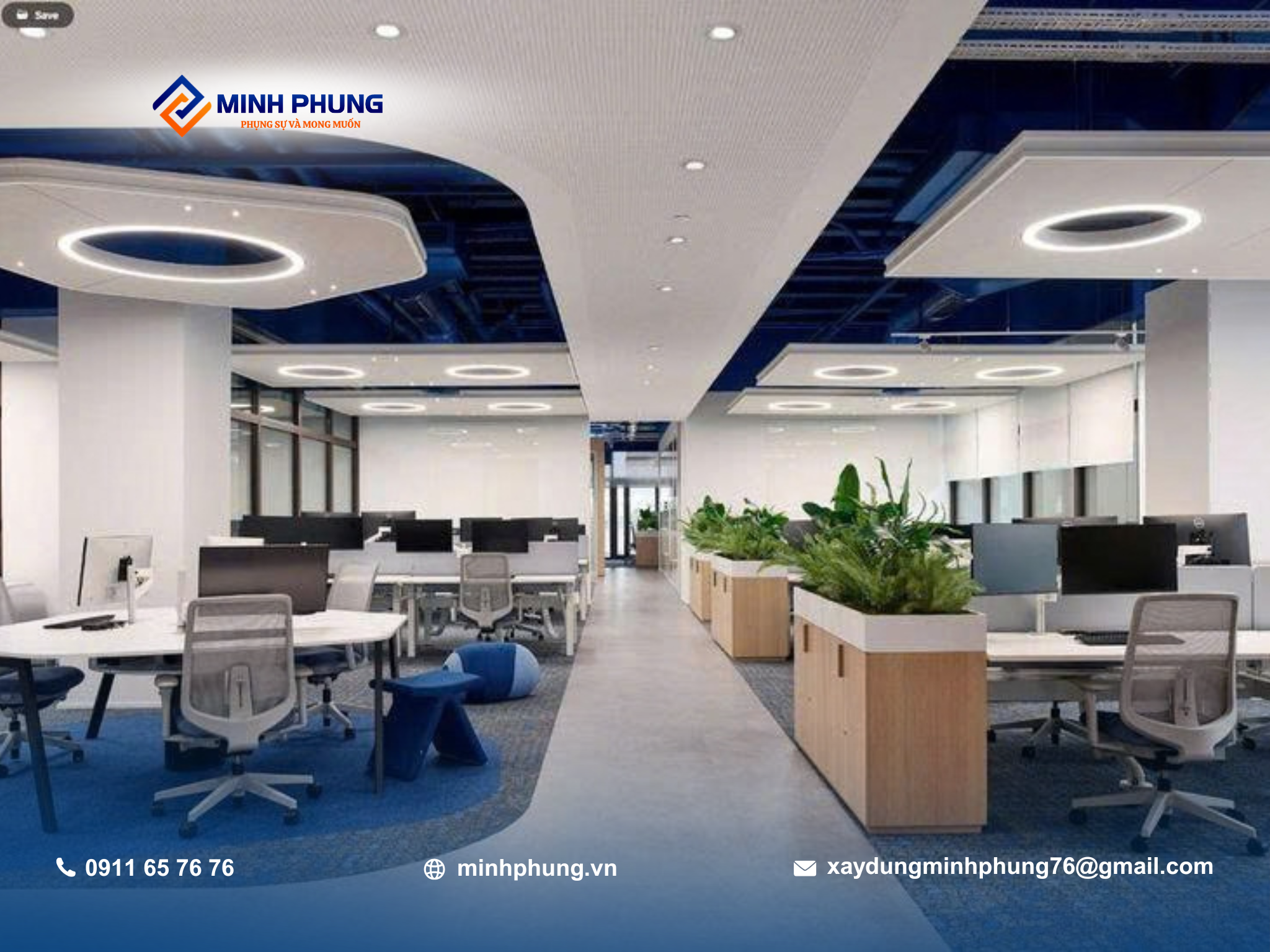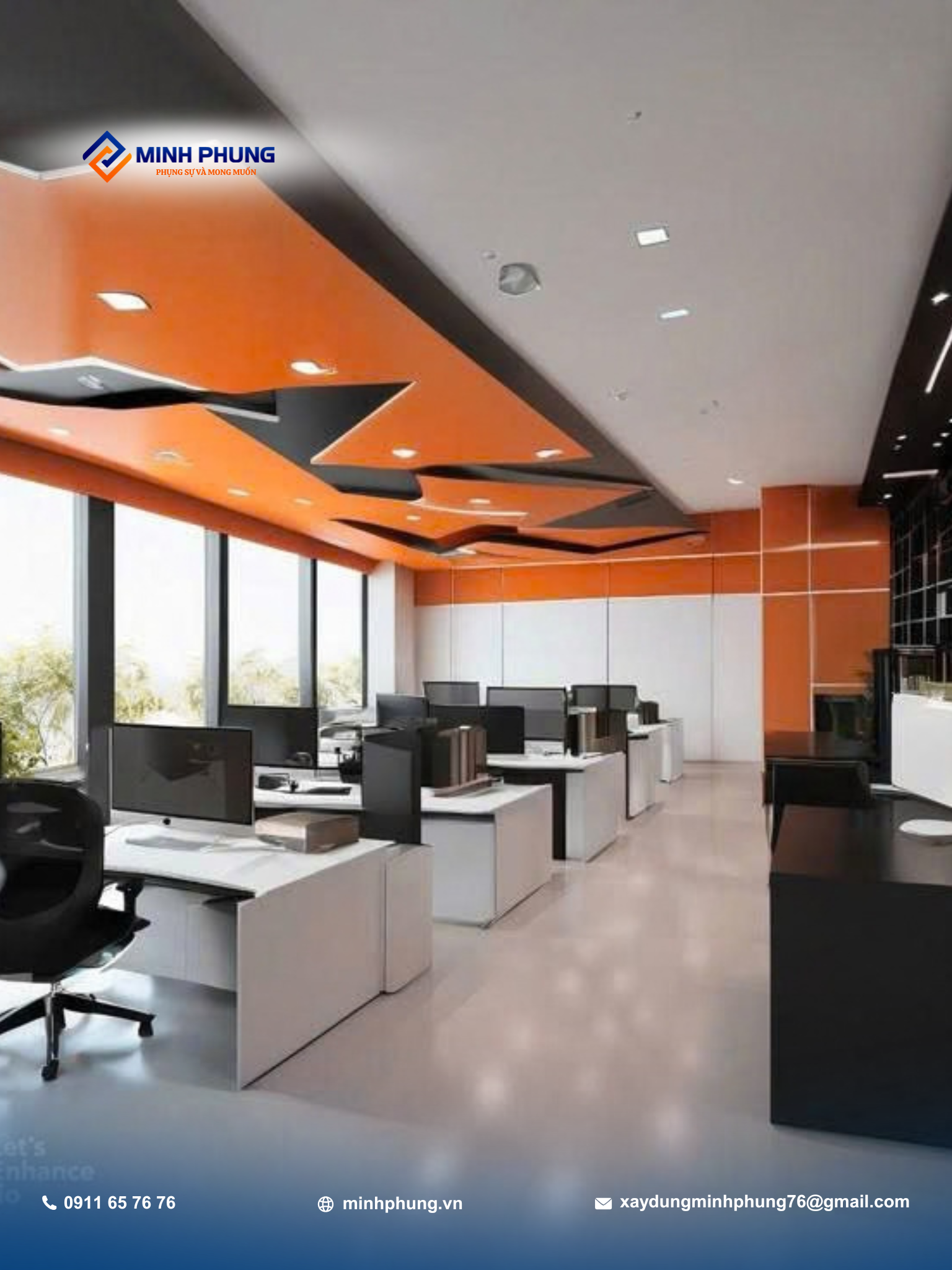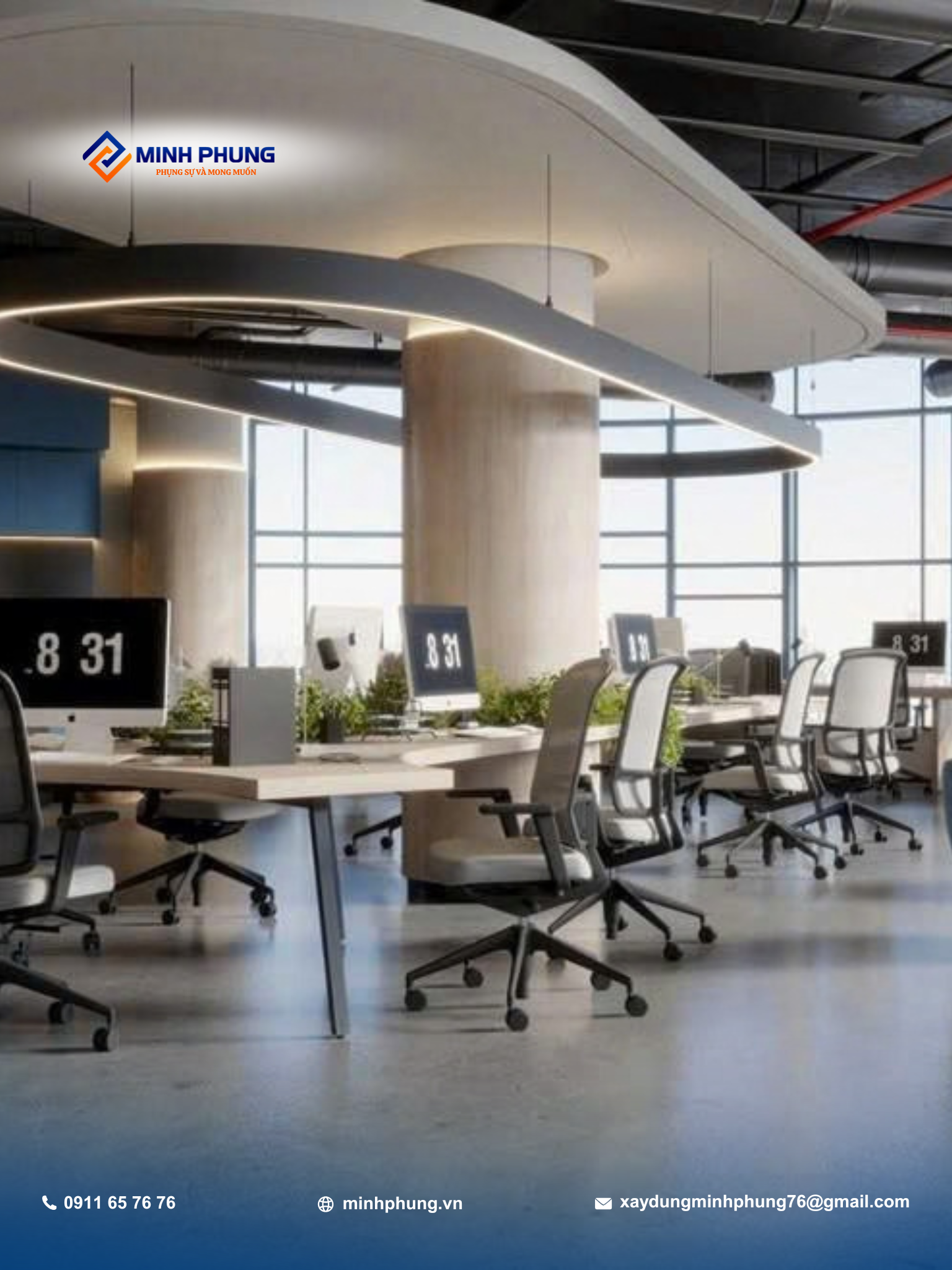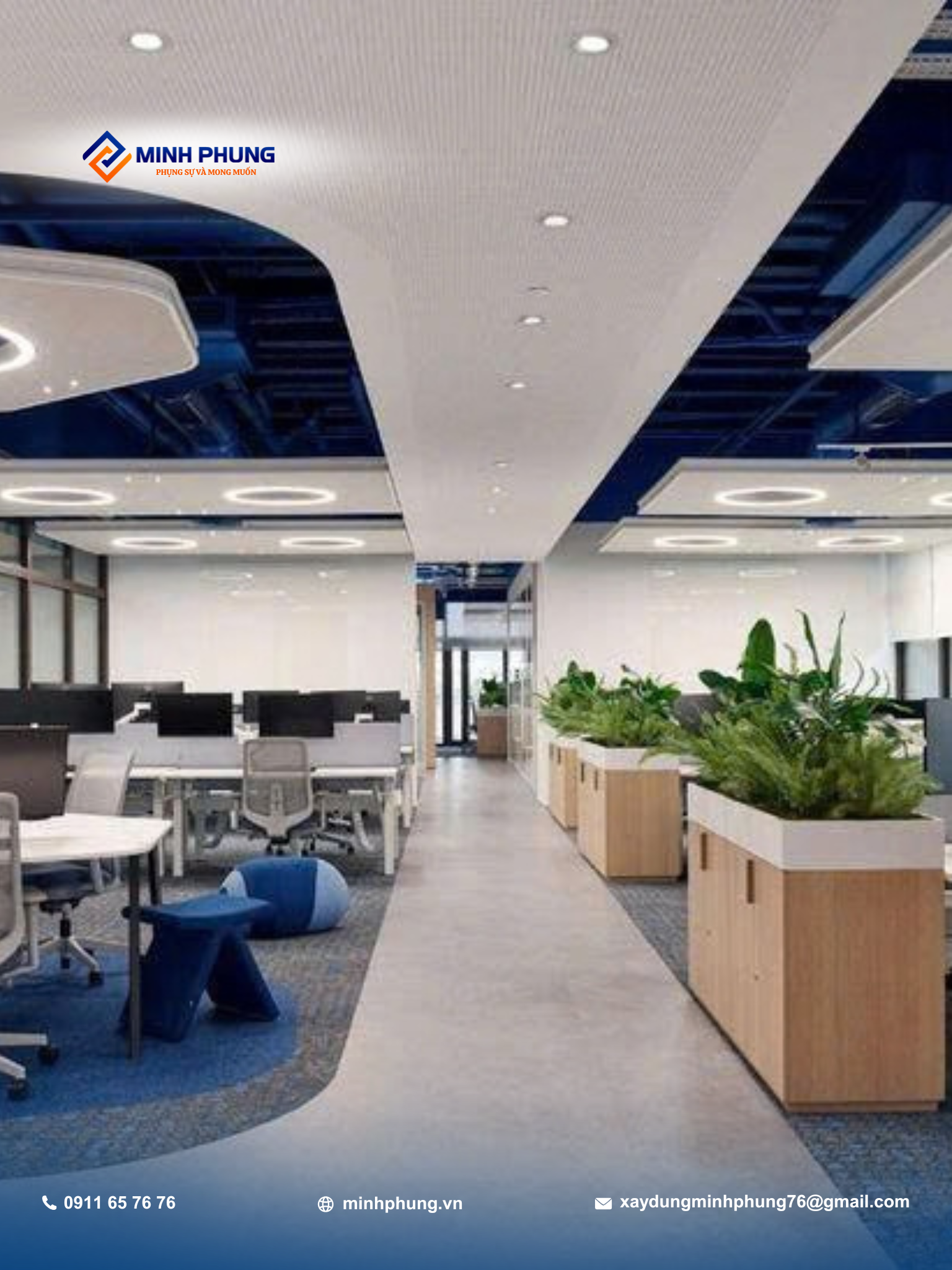 Là một công ty xây dựng uy tín với nhiều năm kinh nghiệm, Minh Phụng cam kết mang đến giải pháp cải tạo văn phòng hiện đại, thẩm mỹ và bền vững.