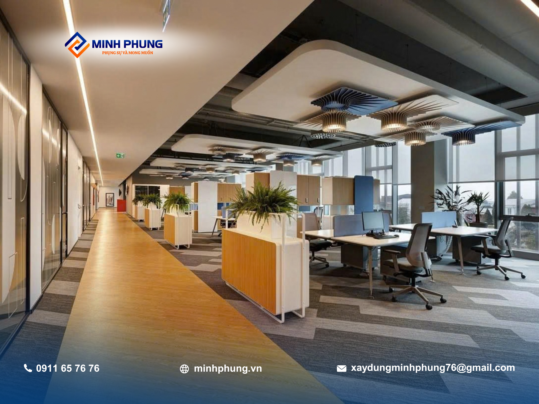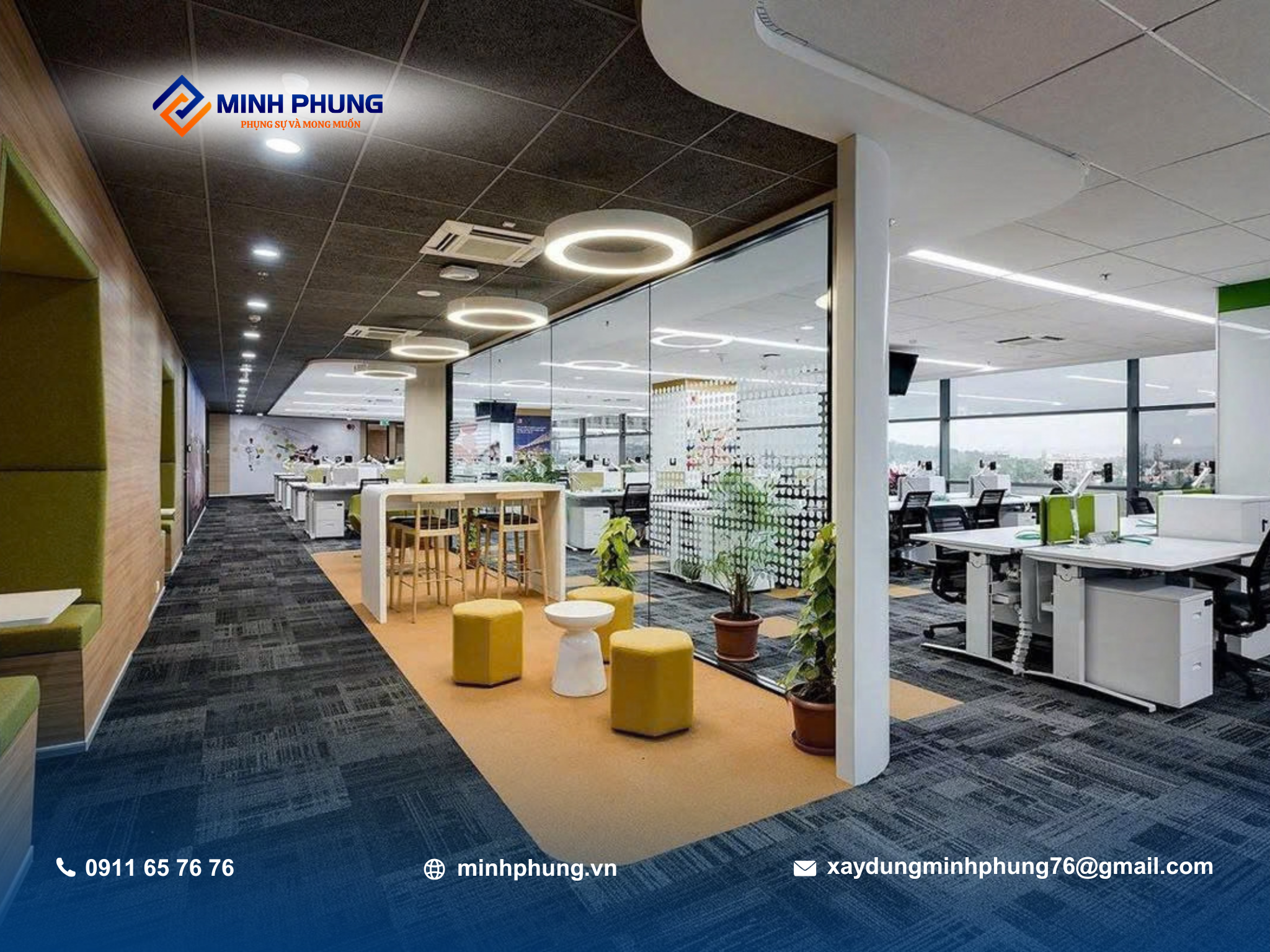 Minh Phụng luôn sẵn sàng đồng hành cùng doanh nghiệp trong mọi dự án trang trí cải tạo văn phòng, mang đến không gian làm việc hiện đại và bền vững cho tương lai.