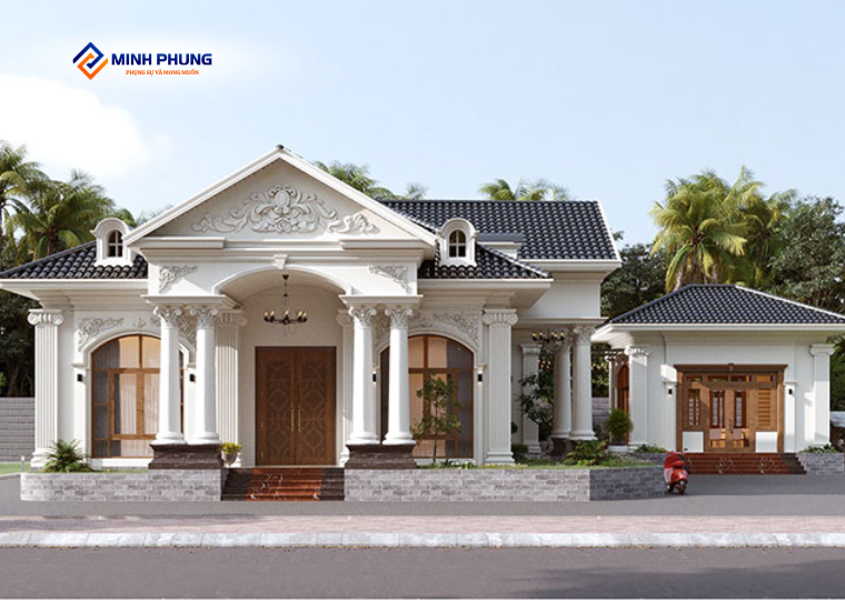 Biệt thự một tầng theo phong cách cổ điển hiện đại là gợi ý hoàn hảo dành cho bạn. Sự hòa quyện giữa cổ kính và kiến trúc hiện đại mang đến không gian sống độc đáo cho gia chủ. Bạn có thể thiết kế biệt thự xinh đẹp với sân trước và những chậu cây xanh tạo nên môi trường sống trong lành và mát mẻ.